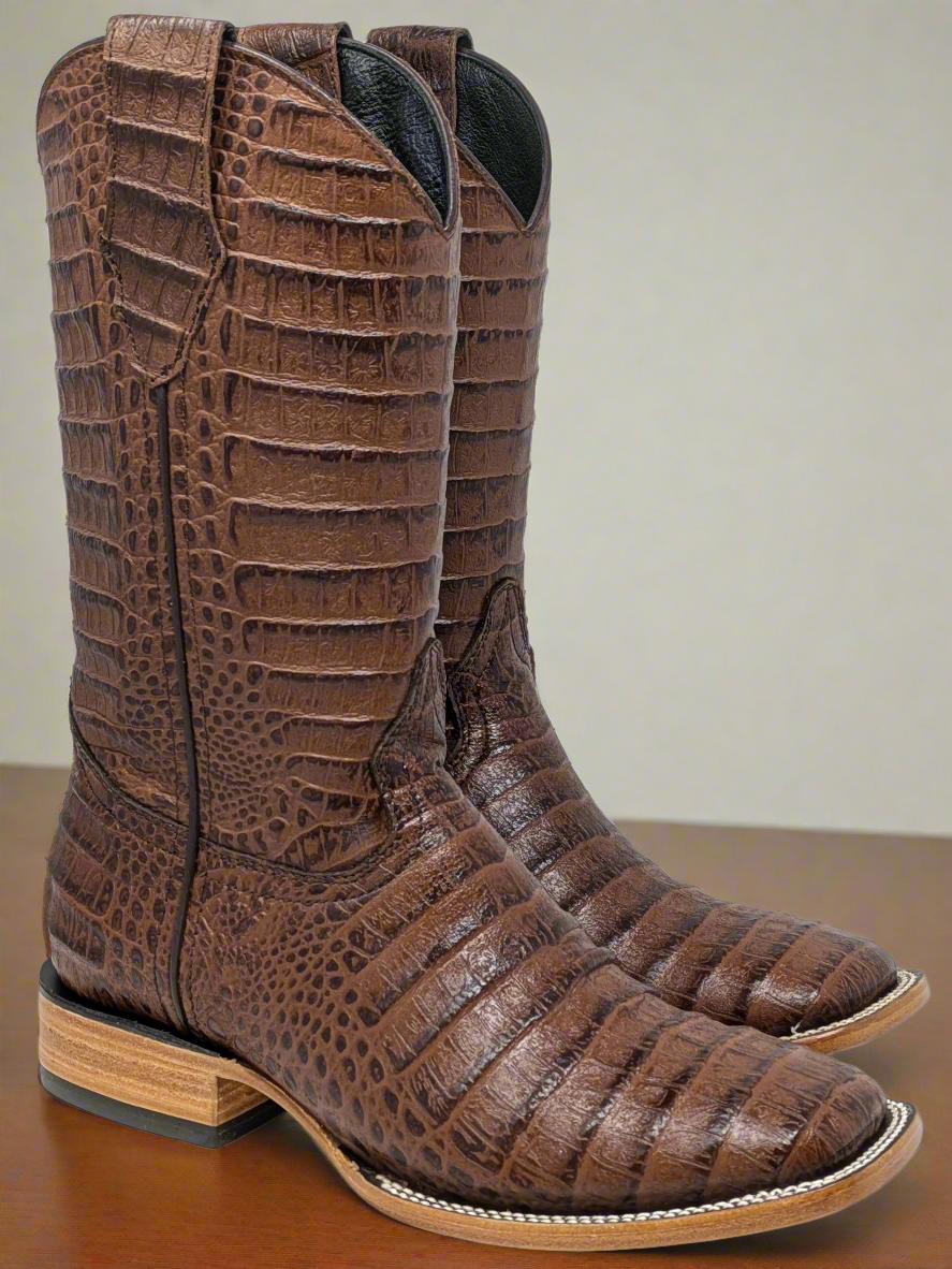 CLEARANCE. Step into authentic Western style with The Mr. Johnson Men's Boot by Bison Boots. Crafted from genuine leather with an authentic Caiman print, these boots are a testament to quality and craftsmanship. Since 1999, Bison Boots has been synonymous with durability and style, making The Mr. Johnson boot a timeless addition to any cowboy's wardrobe.